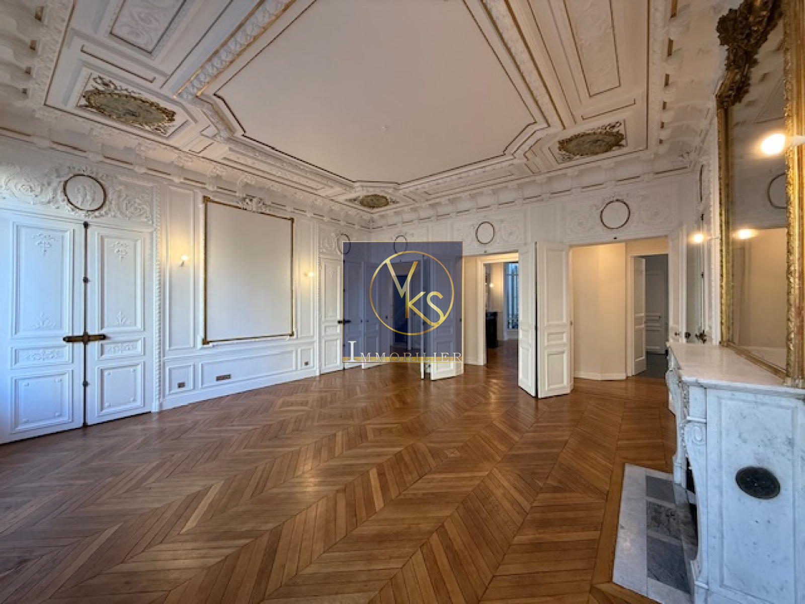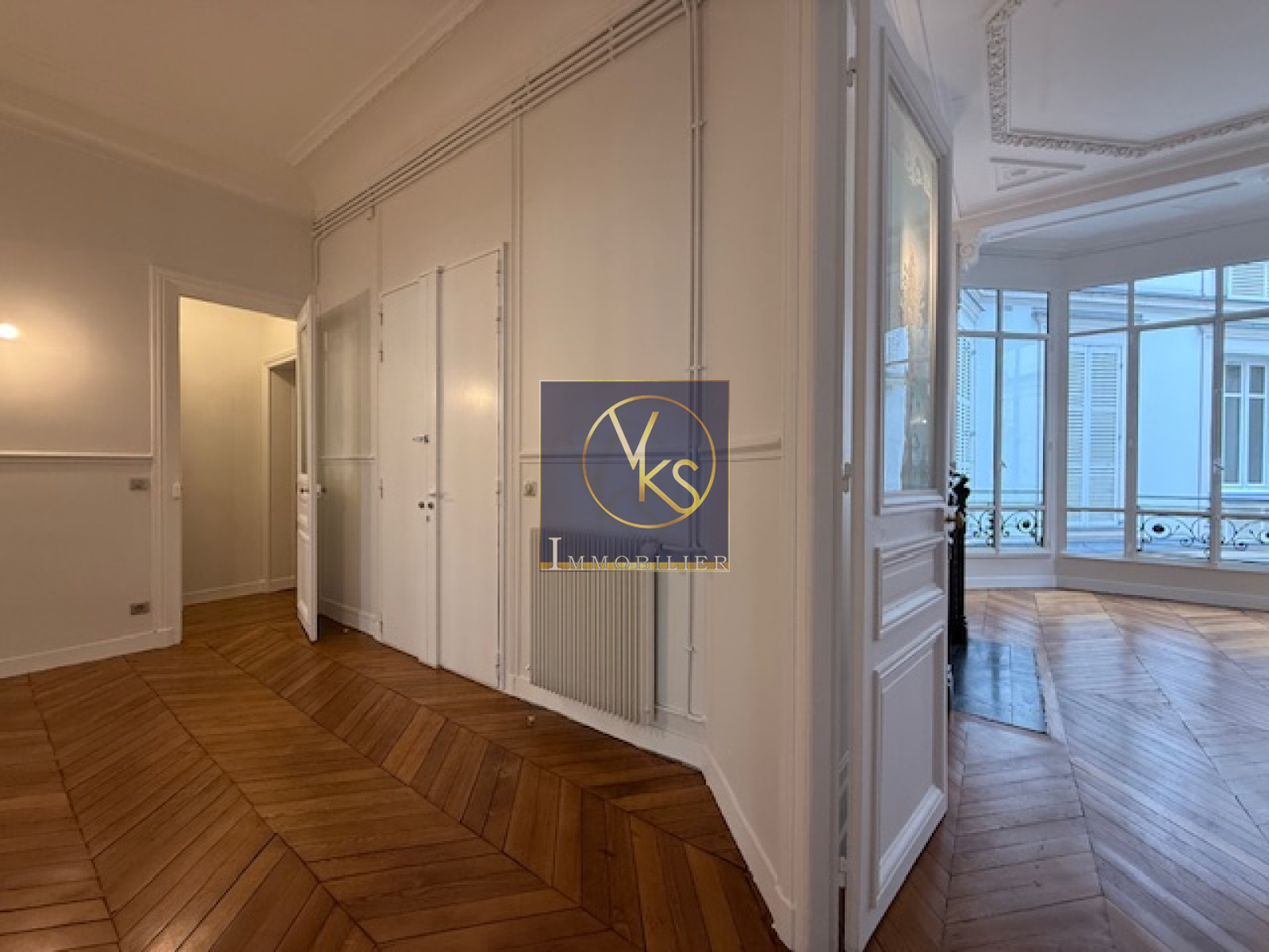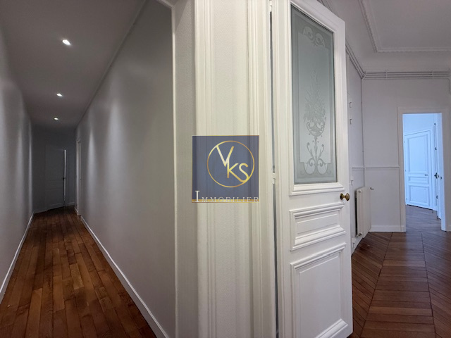 Paris (75007)L'agence VKS Immobilier vous propose, au pied du métro rue du Bac et des commerces, dans un très bel immeuble en pierre de taille, standing, avec digicode, gardien et ascenseur, un superbe appartement de réception de 7 pièces d'une surface de 197m², situé au 2ème étage sur rue et cour, comprenant: une galerie d'entrée, un magnifique séjour donnant sur un balcon filant, une salle à manger, 4 chambres, une salle de bains et une salle d'eau, buanderie et cuisine vide - Une cave complète ce bien. Parquet, moulures et cheminées - Balcon - très belle hauteur sous plafond - Appartement en parfait état - Loyer : 7201.82€ + 350€ de charges - Dépôt de garantie : 7201.82€ Honoraires : 2980.61€ (Assurance loyers impayés: 2.5X le montant du loyer exigé- Sans garant - Dossier Complet) *pas de colocations possible. Libre de suite.